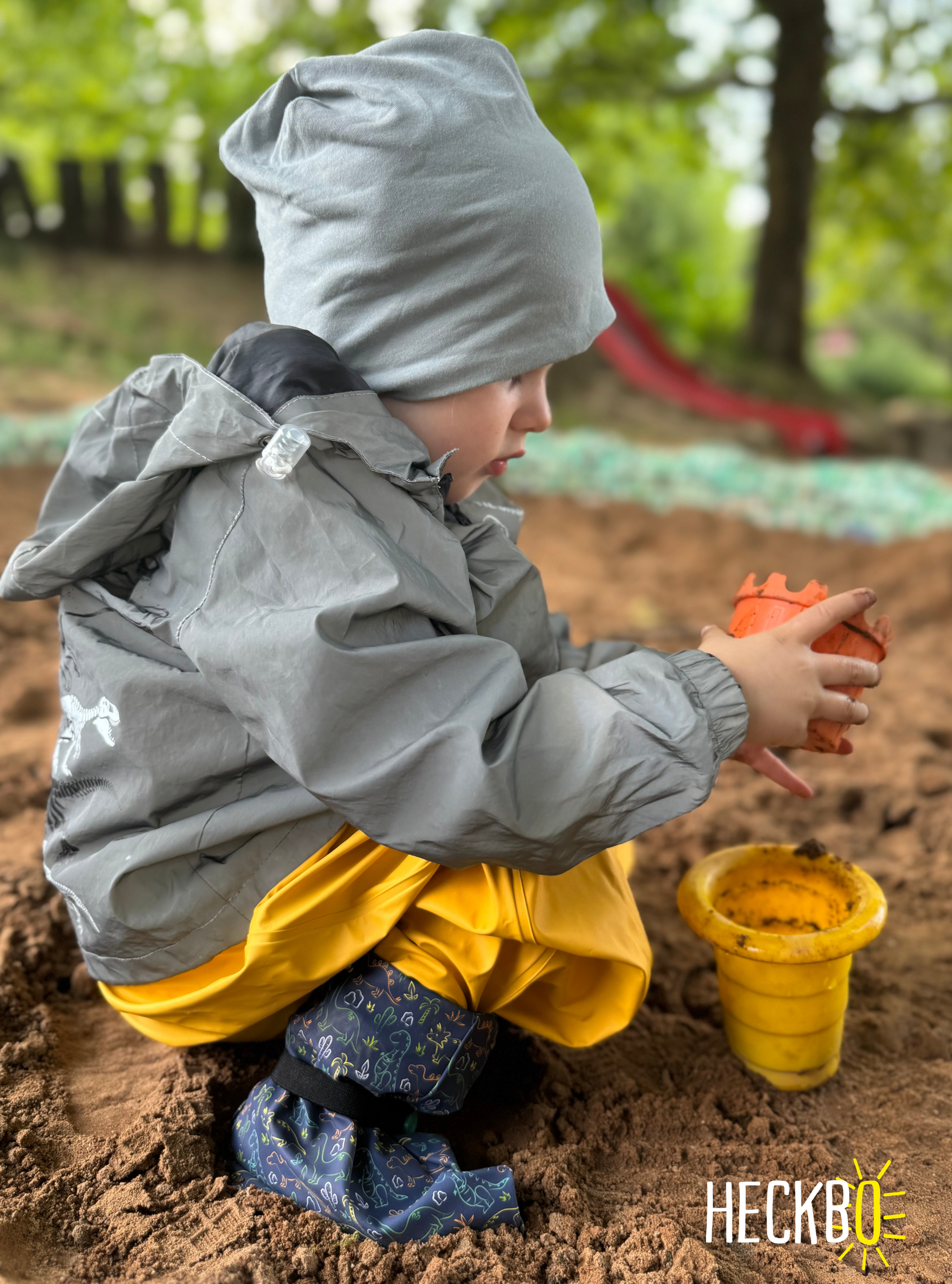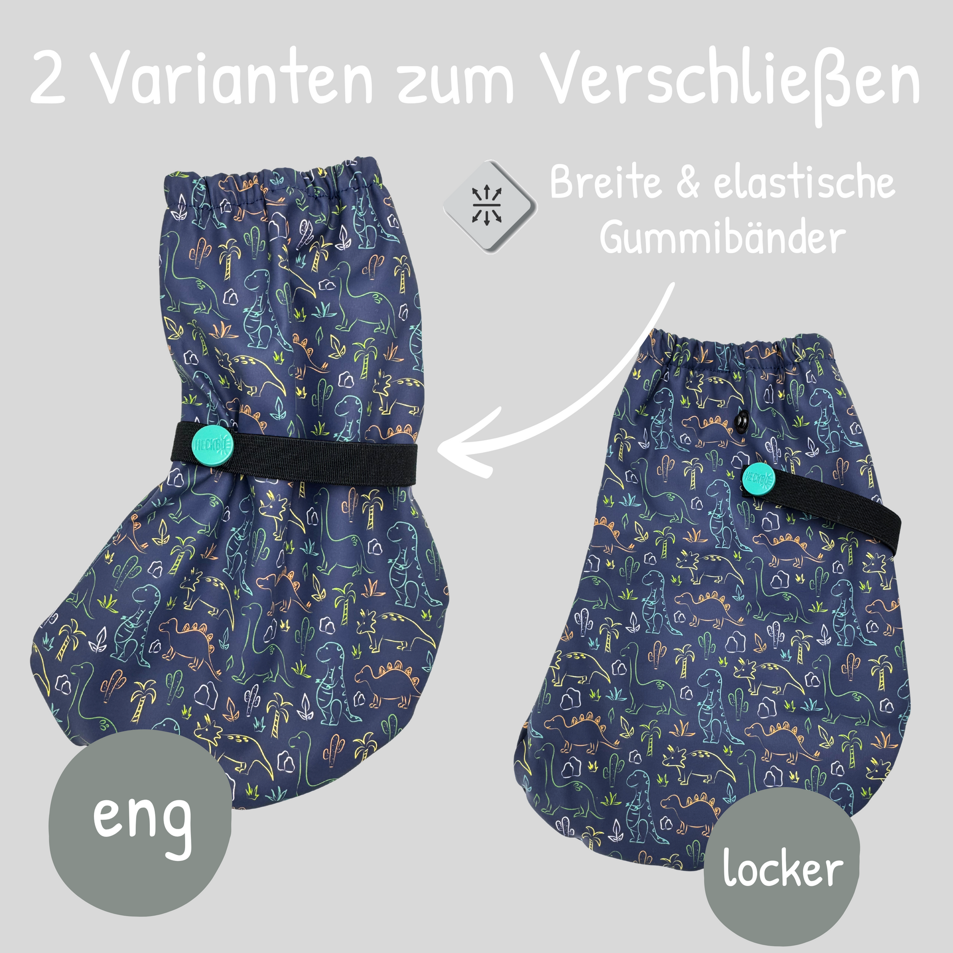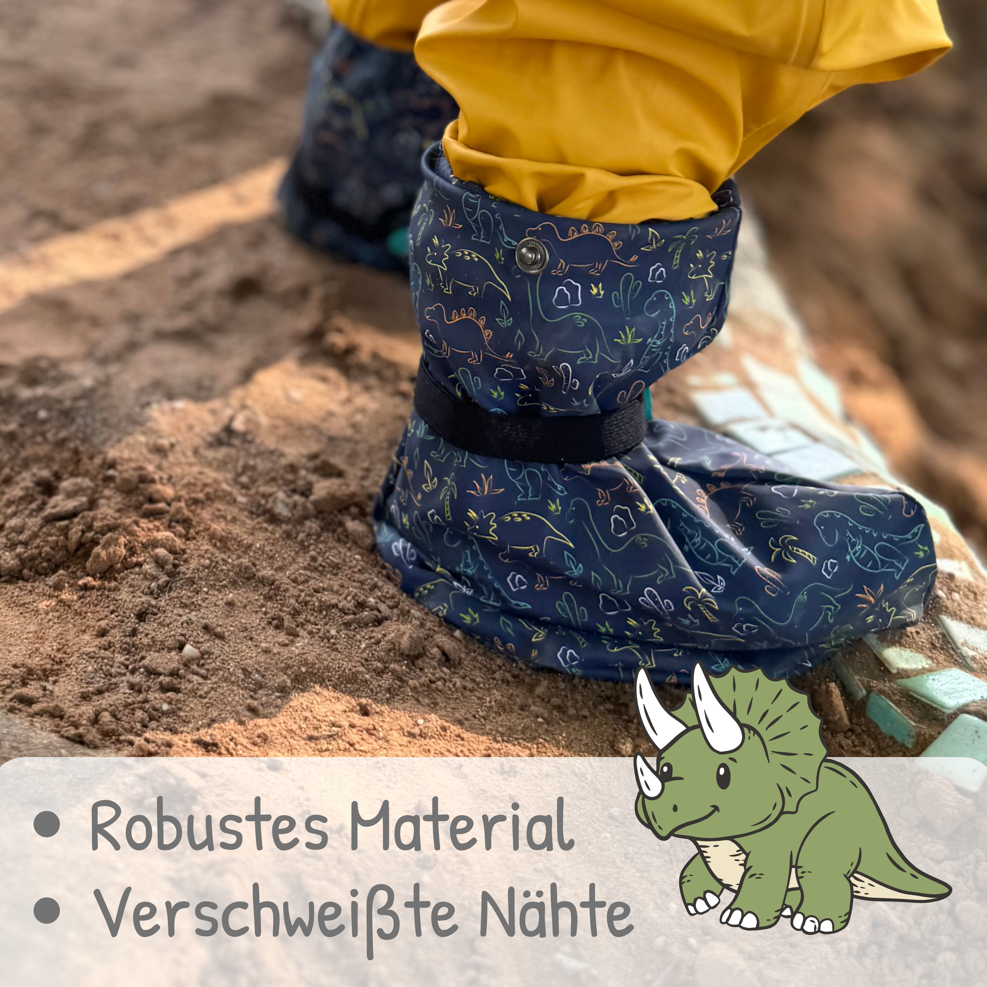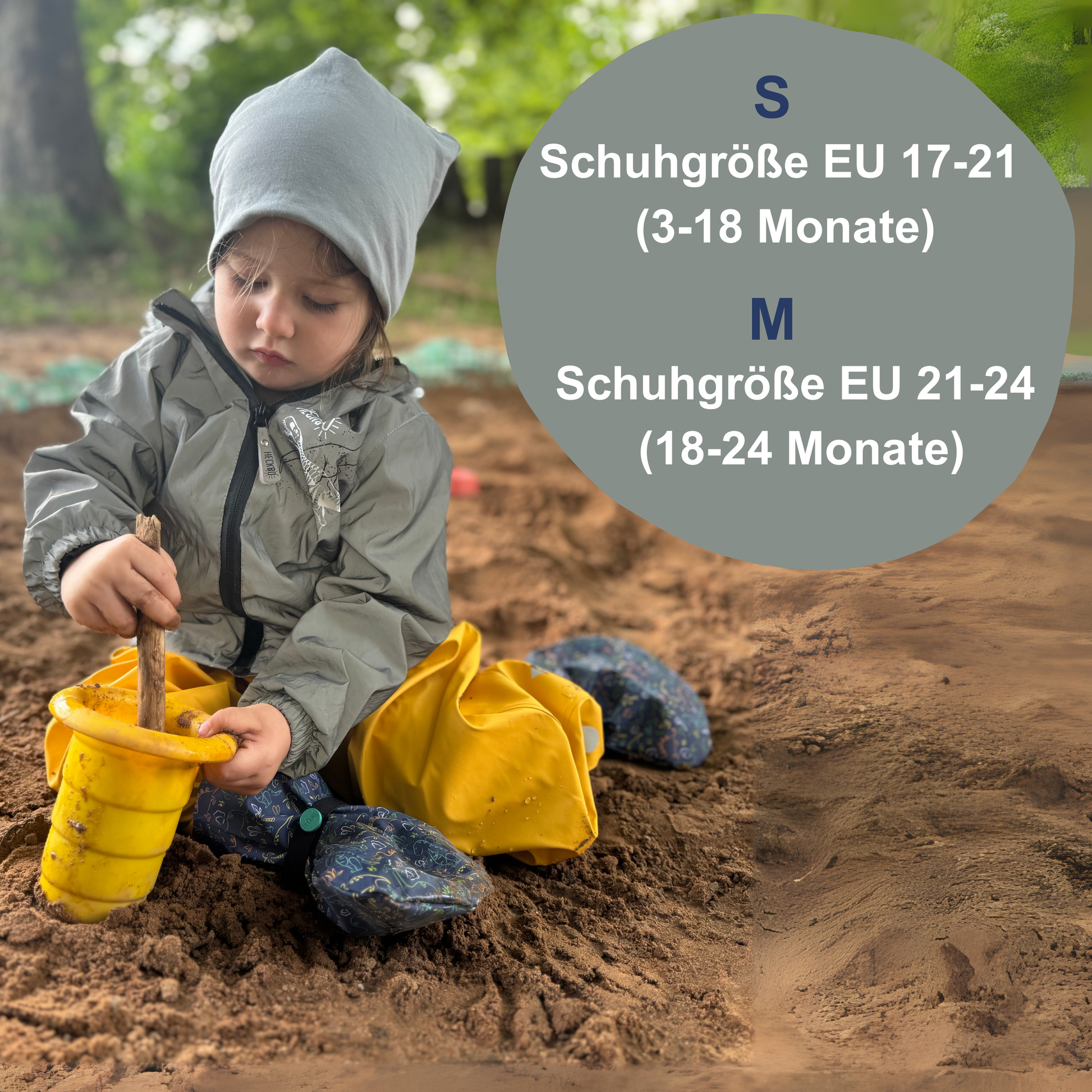 🔒 ZUVERLÄSSIGER SCHUTZ FÜR KLEINE FÜSSE: Einfach über Schuhe oder Socken ziehen – der flexible Gummizug am Schaft sorgt für einen sicheren Sitz, ohne zu verrutschen.