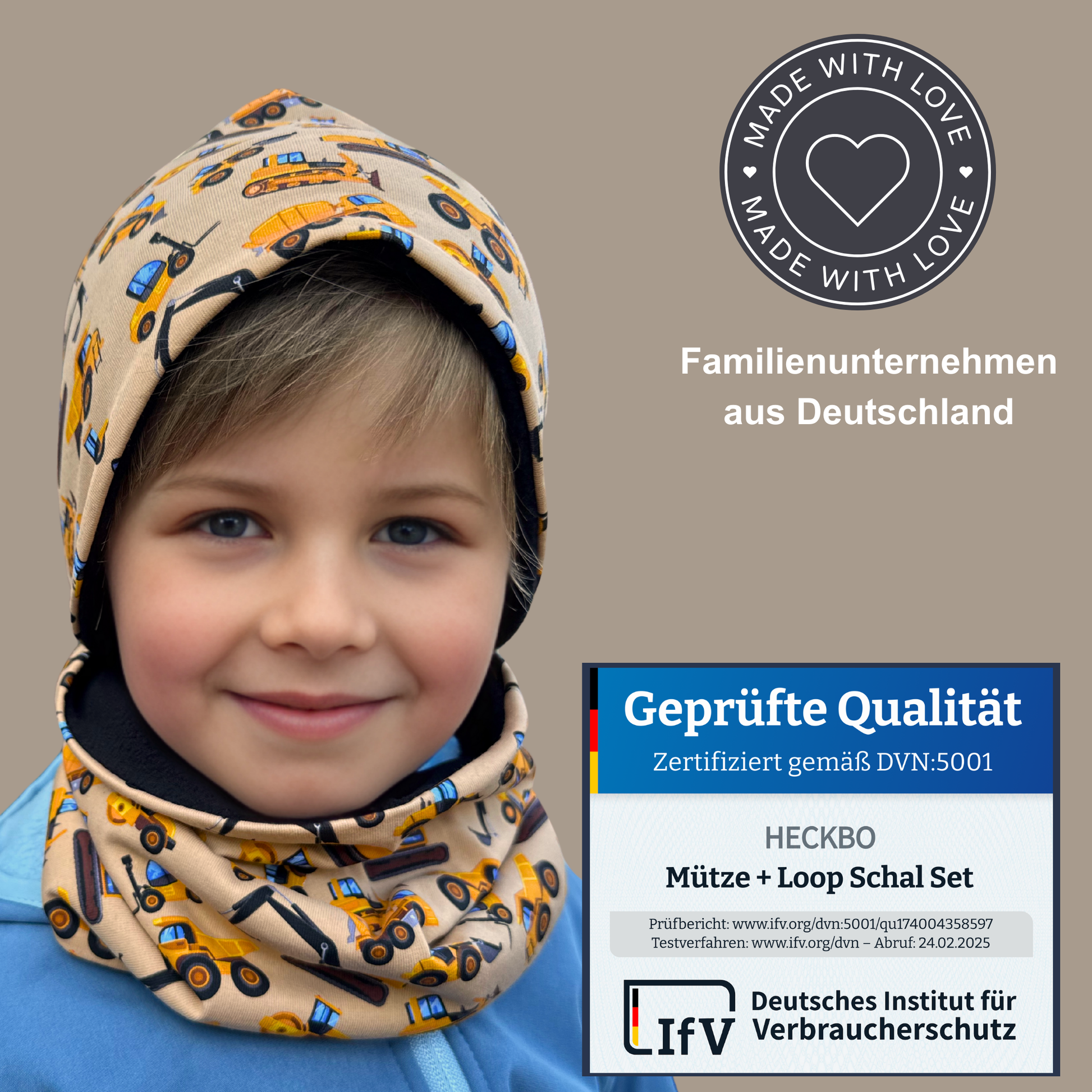 Kinder Beanie Mütze & Loop Set - Baufahrzeuge