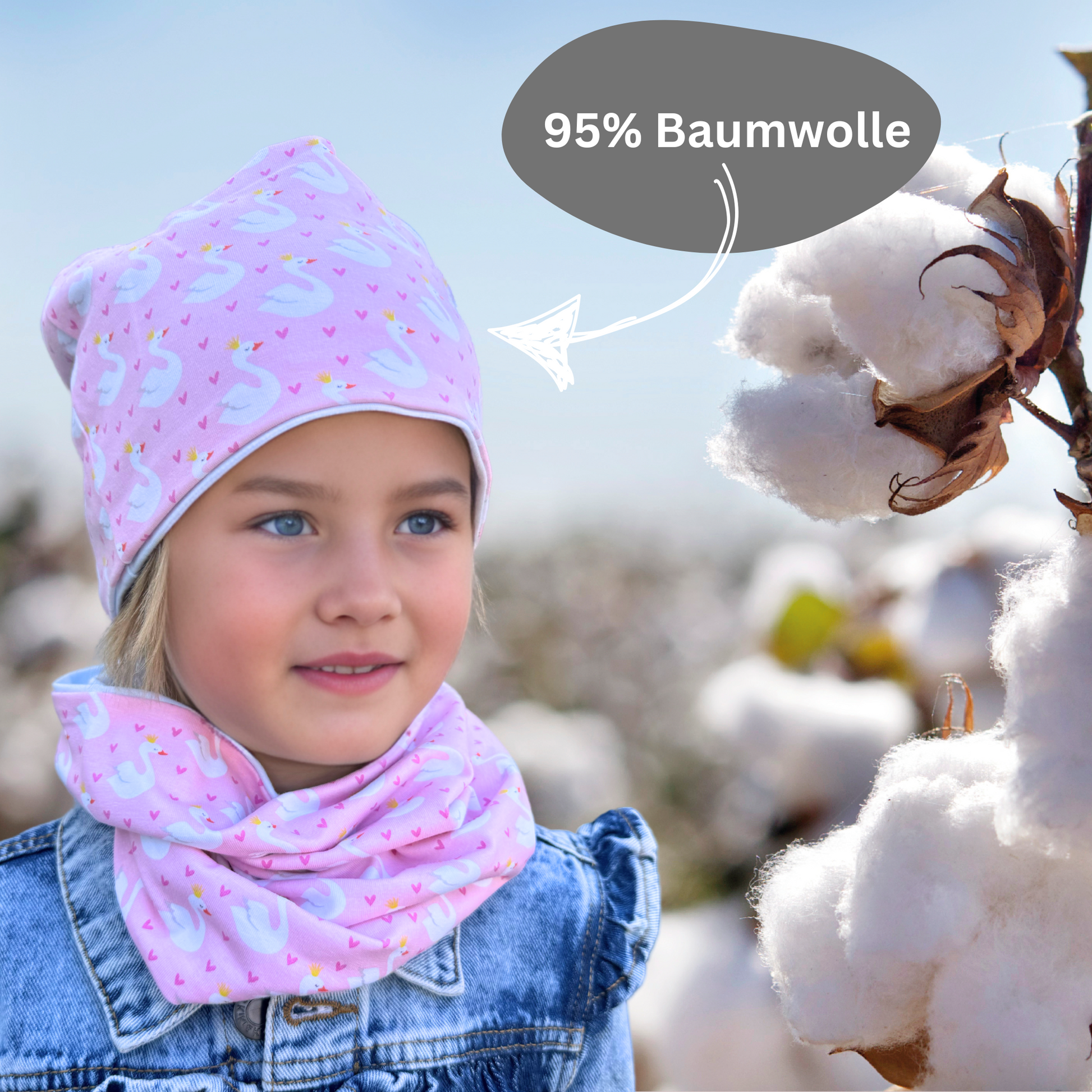 Ob kühle Frühlingsmorgen, frische Herbsttage oder kalte Winterspaziergänge – mit diesem liebevoll gestalteten Mützen- und Schlauchschal-Set im fröhlichen Schwan-Design ist dein Kind jederzeit gut geschützt. Das Set vereint kindgerechtes Design, funktionale Materialien und hohen Tragekomfort. Erhältlich in zwei Varianten – passend für das ganze Jahr.