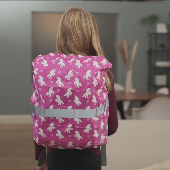 🎒 EINFACHE HANDHABUNG FÜR KINDER: Die Hülle lässt sich dank elastischem Gummizug und zwei seitlichen Gummibändern schnell überziehen und sitzt auch bei Wind sicher – passend für die meisten Schulranzen und Kinderrucksäcke.
