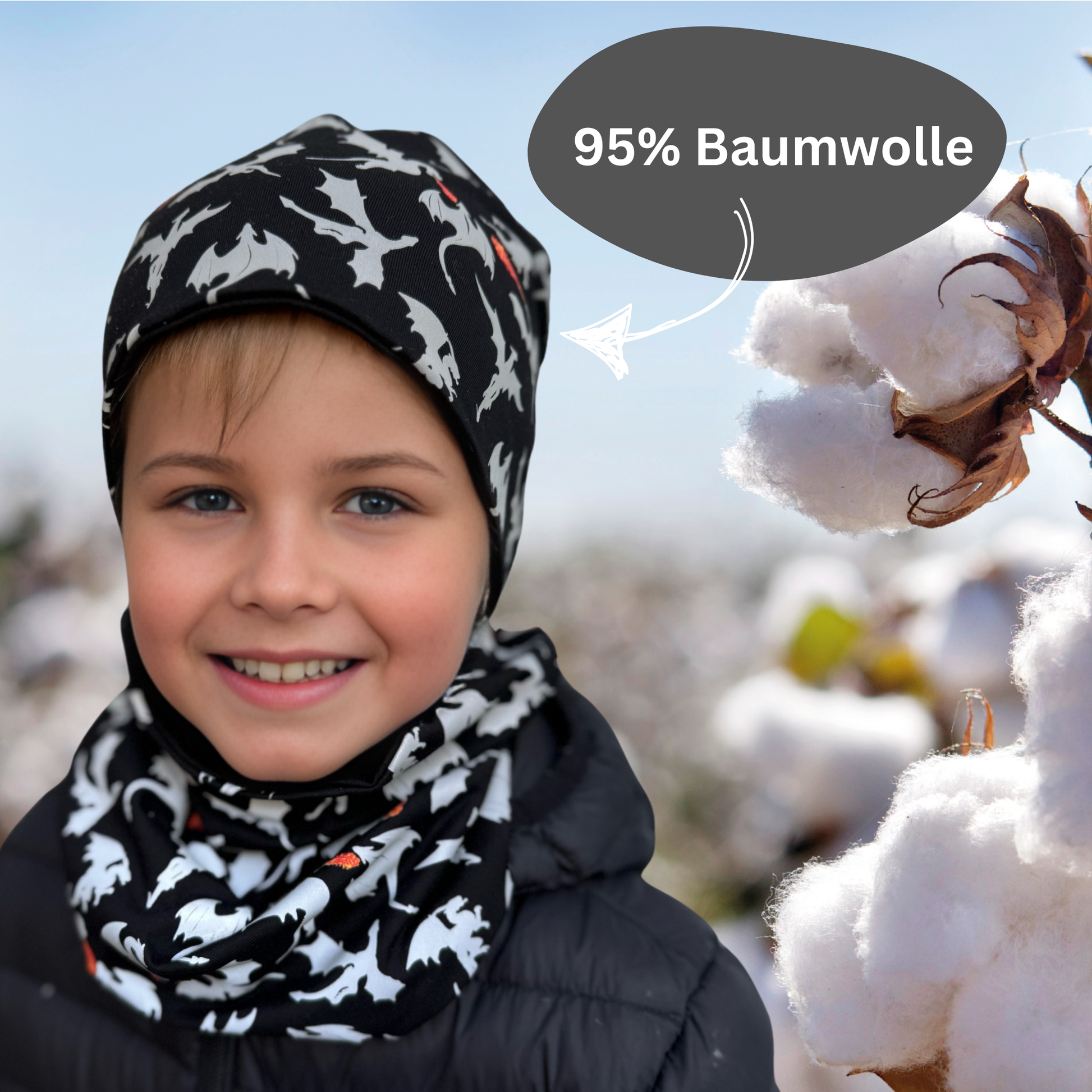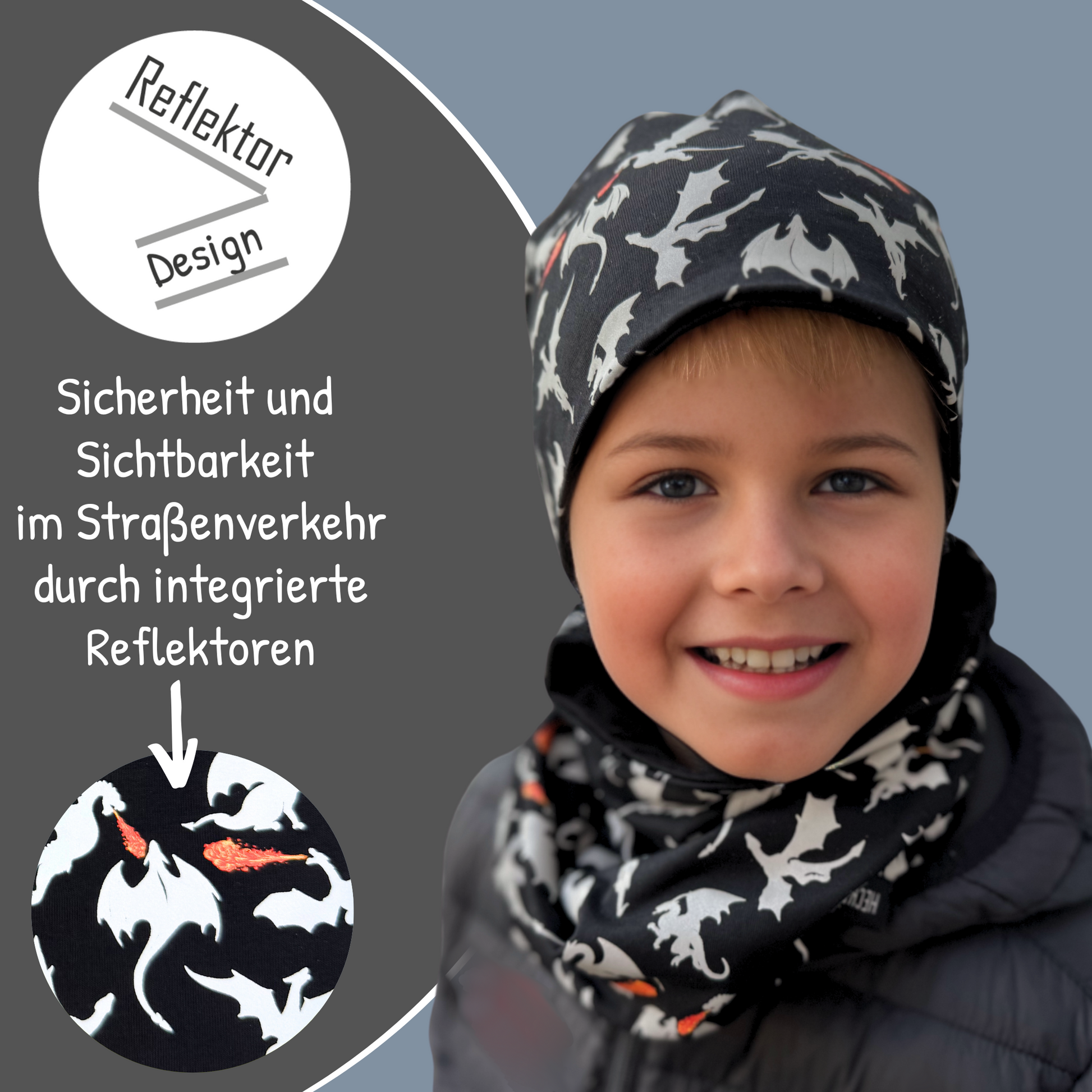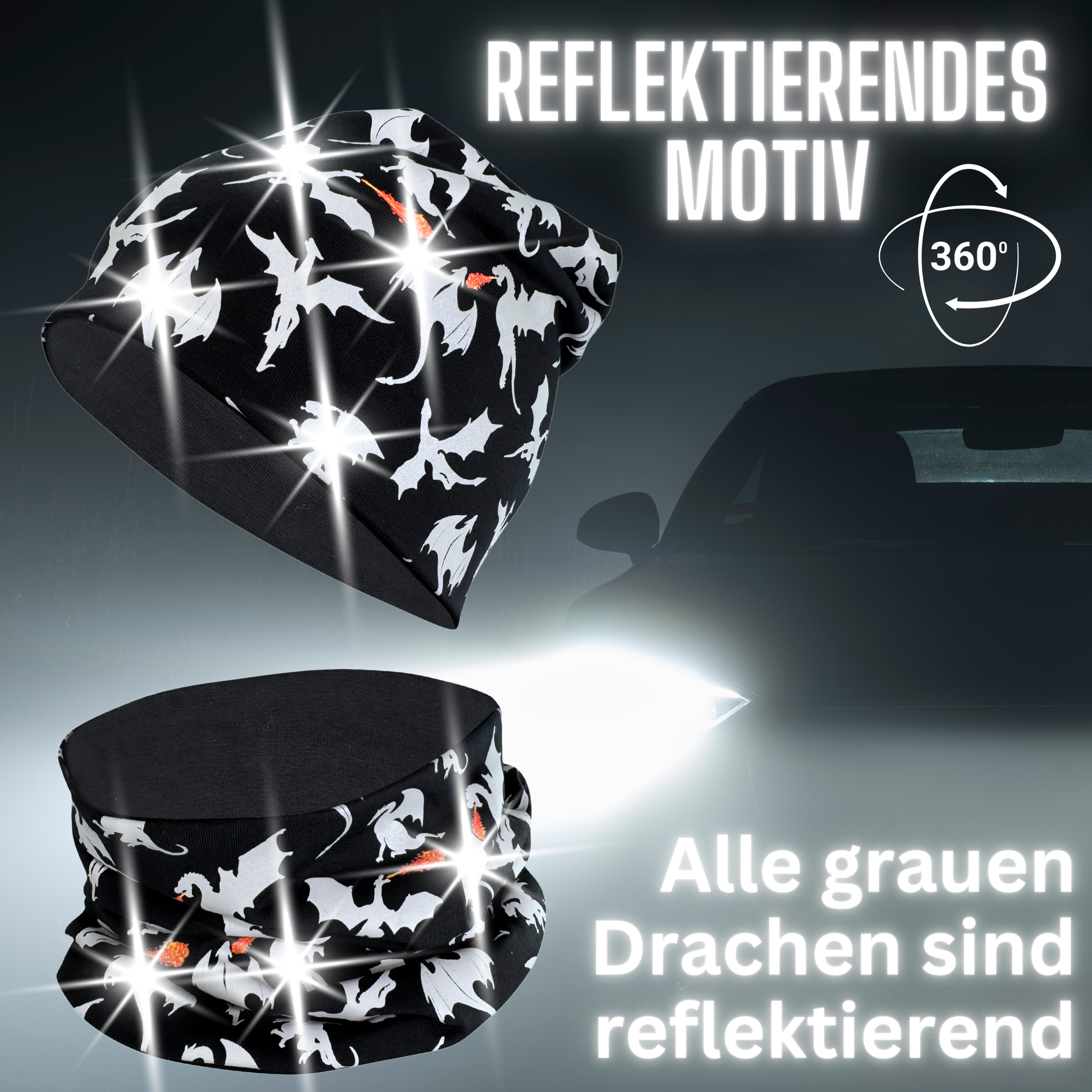 🐉 Mütze & Schal im Set – mit reflektierendem Drachen-Design