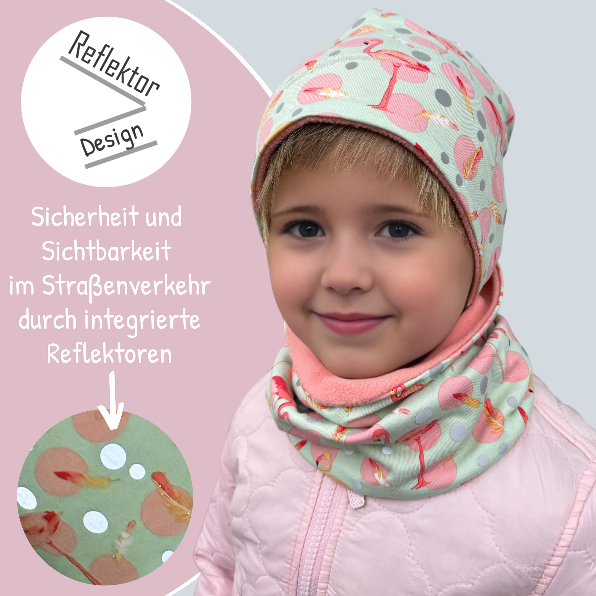 Kinder Reflektor Mütze & Loop - Flamingo