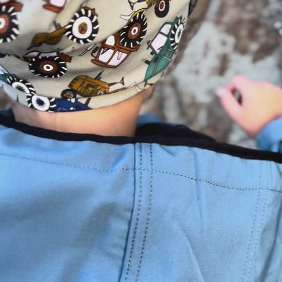 Außen weicher Baumwoll-Stretch (95 % Baumwolle, 5 % Elasthan), innen ein wärmender Vliesstoff – doppellagig verarbeitet für optimalen Schutz vor Wind und Kälte.