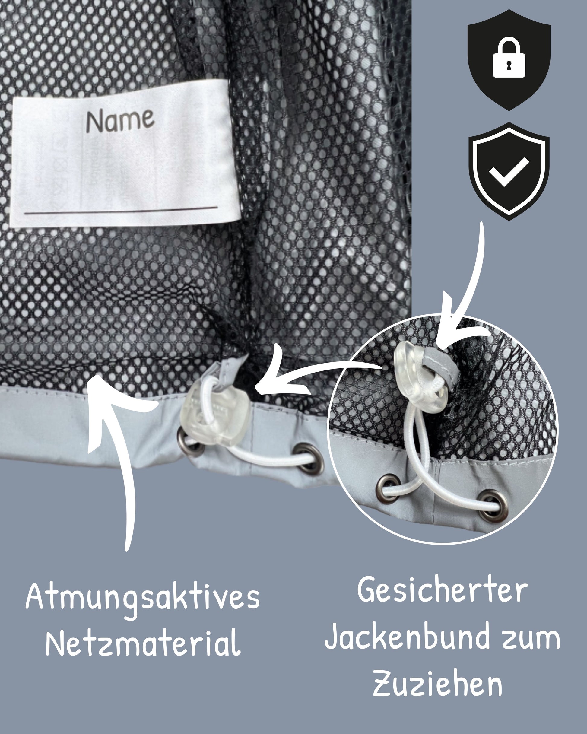 ⚙️ PRAKTISCHE FEATURES: Mit Reißverschluss samt reflektierendem Zipper, zwei verschließbaren Eingriffstaschen, verstellbarer Kapuze und verstellbarem Bund.